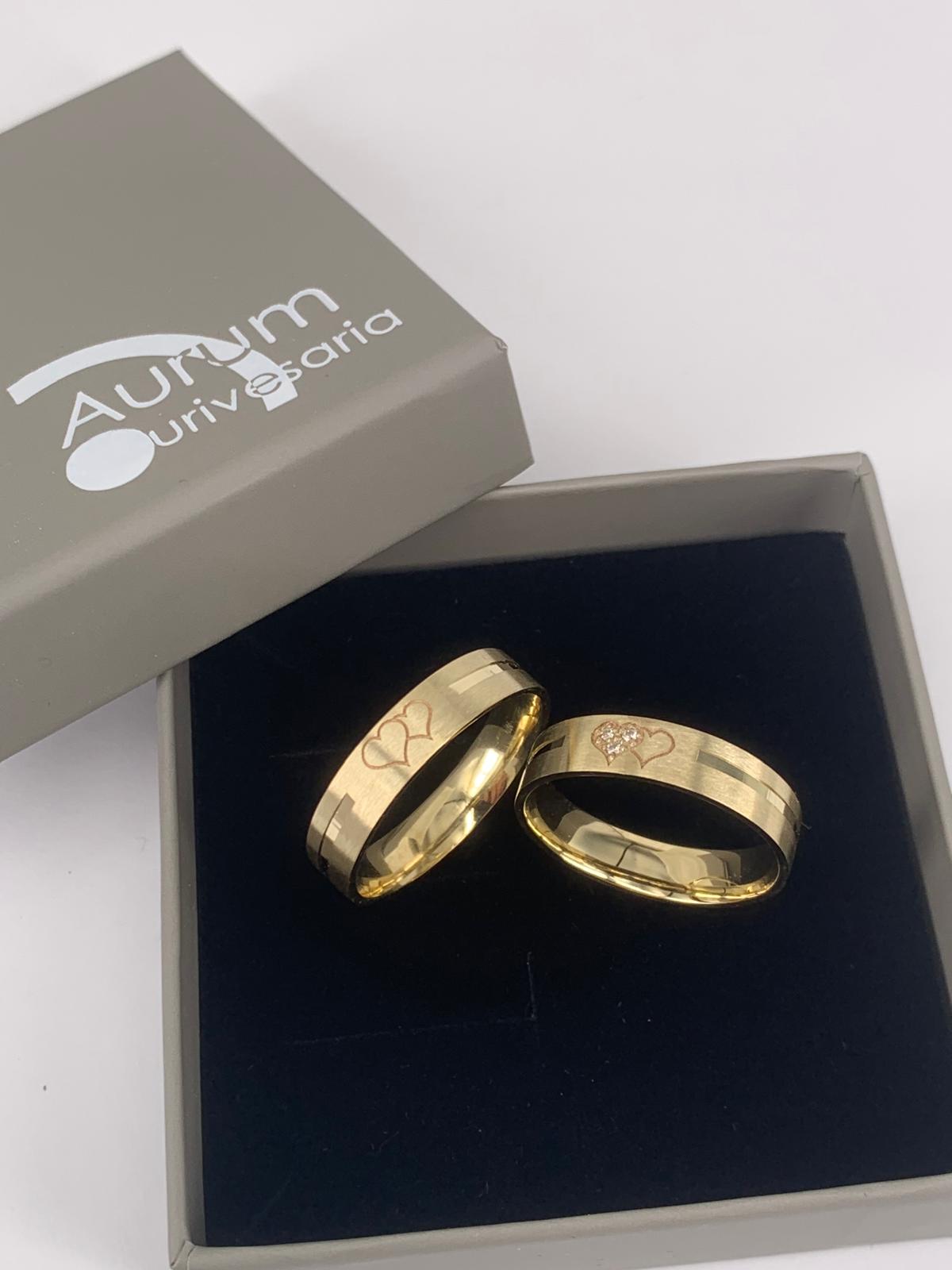 Aliança com friso ao centro e corações