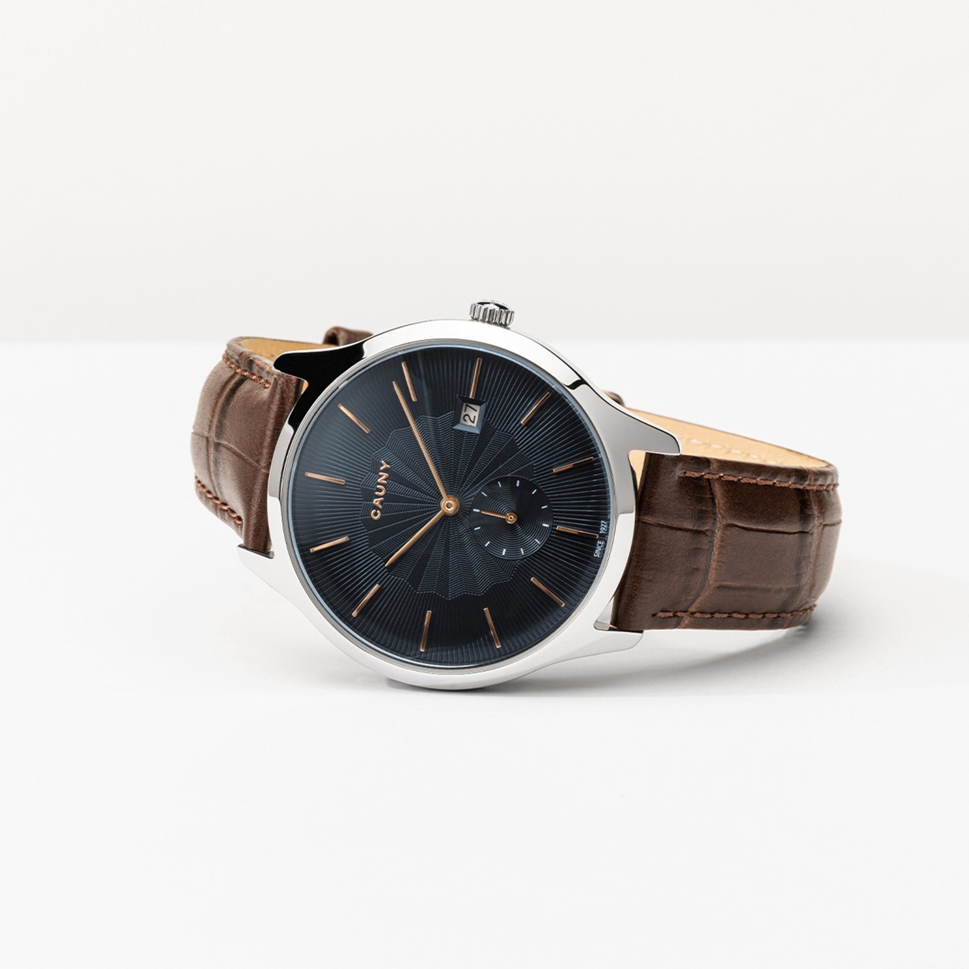 “Os relevos no mostrador do Envoy Patterns Blue são uma homenagem à tradição da Cauny, que desde o seu primeiro relógio mostrou que cada detalhe conta. Esta peça de relojoaria tradicional com espírito irreverente é uma reinterpretação à luz da modernidade de um modelo clássico da Cauny, apetrechado com uma caixa em aço de alta precisão 316L, uma fina bracelete em pele italiana e um mostrador com detalhes em prateado. Os relevos característicos da marca fazem deste relógio um exemplar perfeito do rigor, excelência e minúcia que identificam a coleção Envoy.”