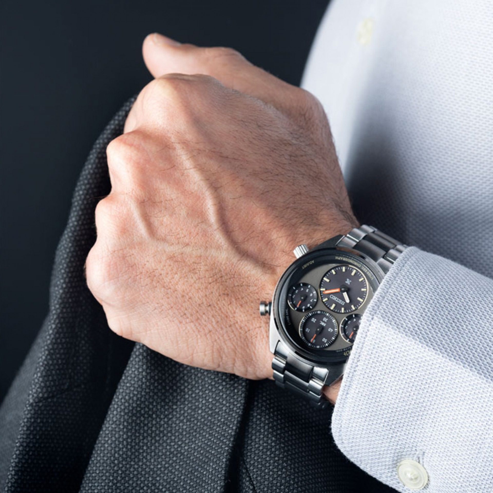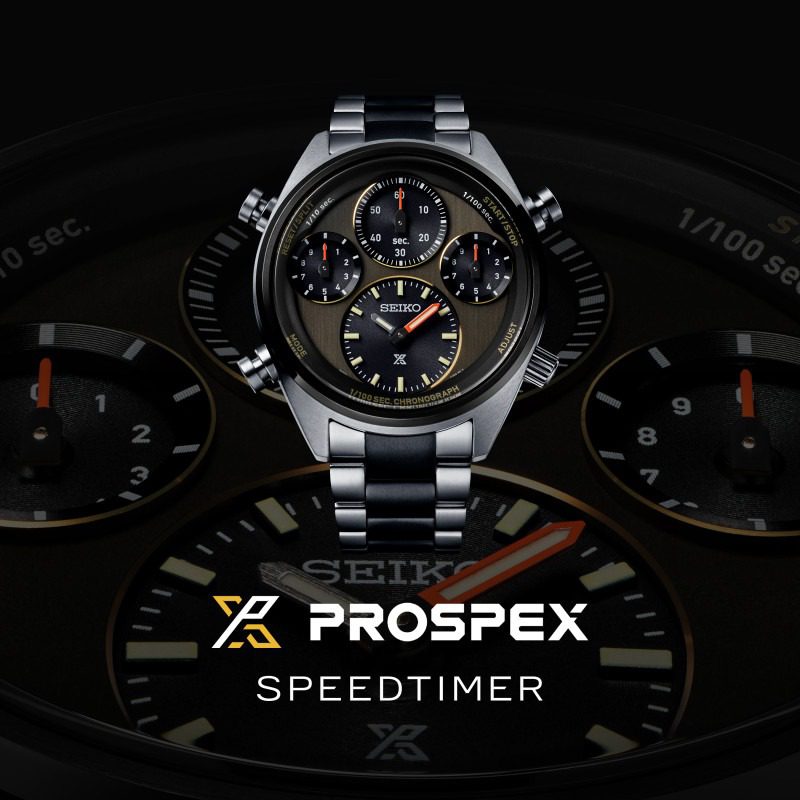 “Um relógio Prospex Speedtimer Cronógrafo Solar de 1/100 de segundo, que se destaca pela sua precisão e legibilidade. Equipado com o novo calibre solar 8A50, com capacidade de medição de tempos decorridos em incrementos de 1/100 de segundo. Este modelo de edição limitada, com o seu mostrador acinzentado, celebra o 40º aniversário do primeiro cronógrafo de quartzo analógico do mundo, lançado pela Seiko em 1983. O mostrador e os ponteiros em tom de vermelho alaranjado prestam homenagem ao primeiro cronógrafo de quartzo analógico do mundo capaz de medir em incrementos de 1/100 de segundo, apresentado pela Seiko 9 anos mais tarde, em 1992. Este foi um desenvolvimento especialmente marcante na história do cronógrafo de quartzo analógico da Seiko.”