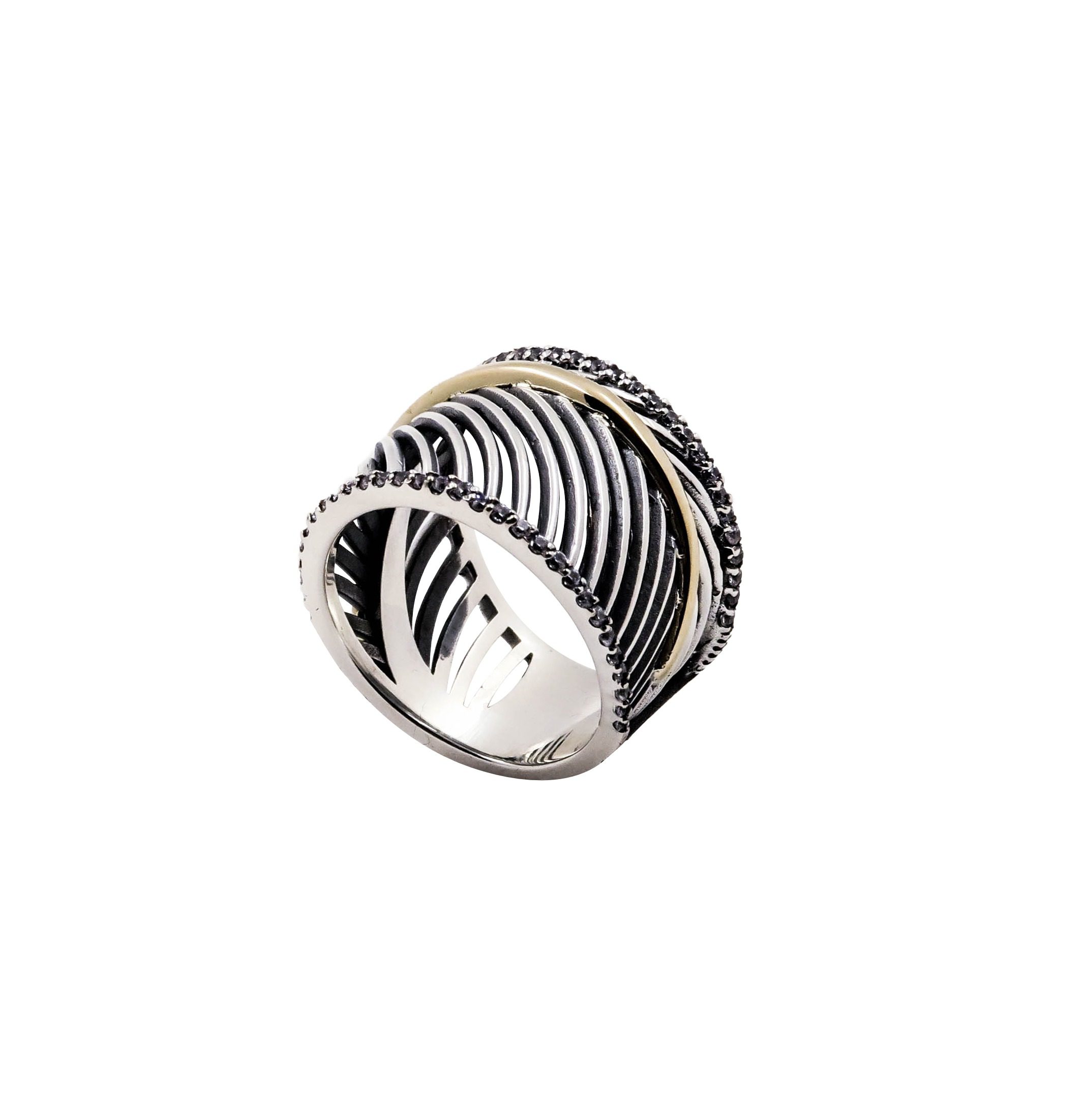 Anel em prata de lei e ouro de 9 kt com zircónia.
