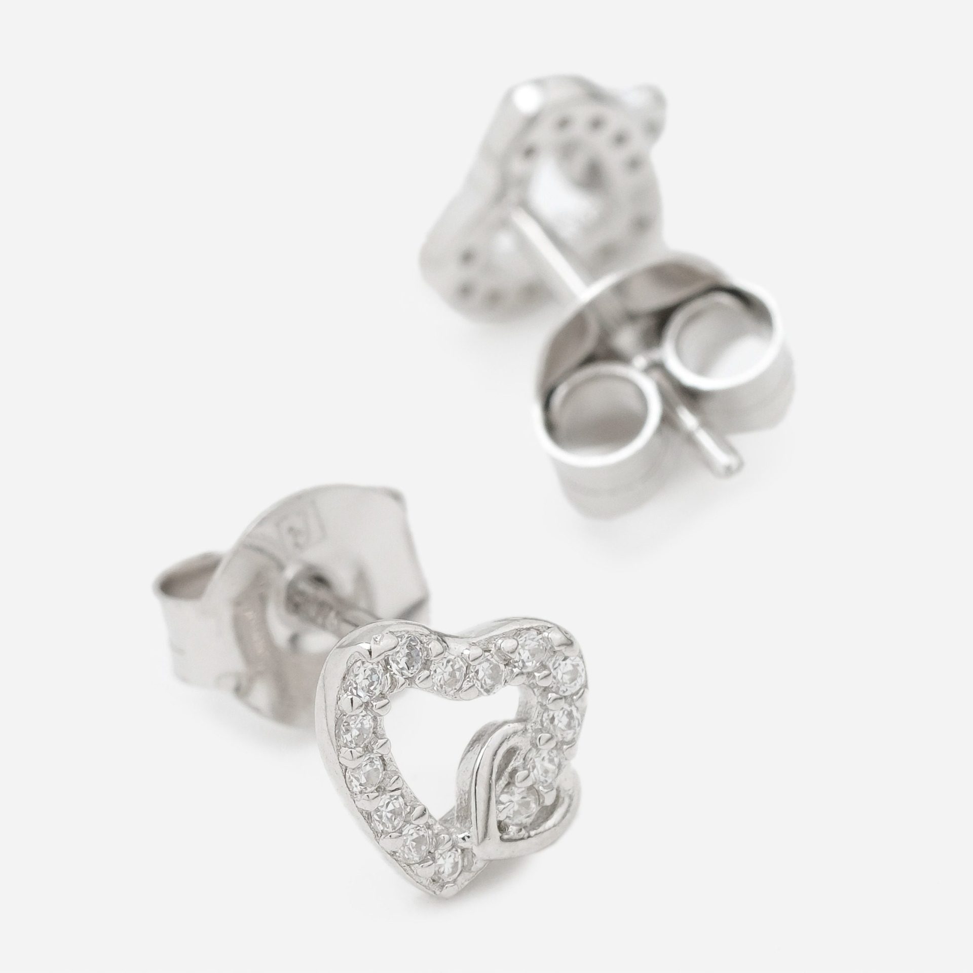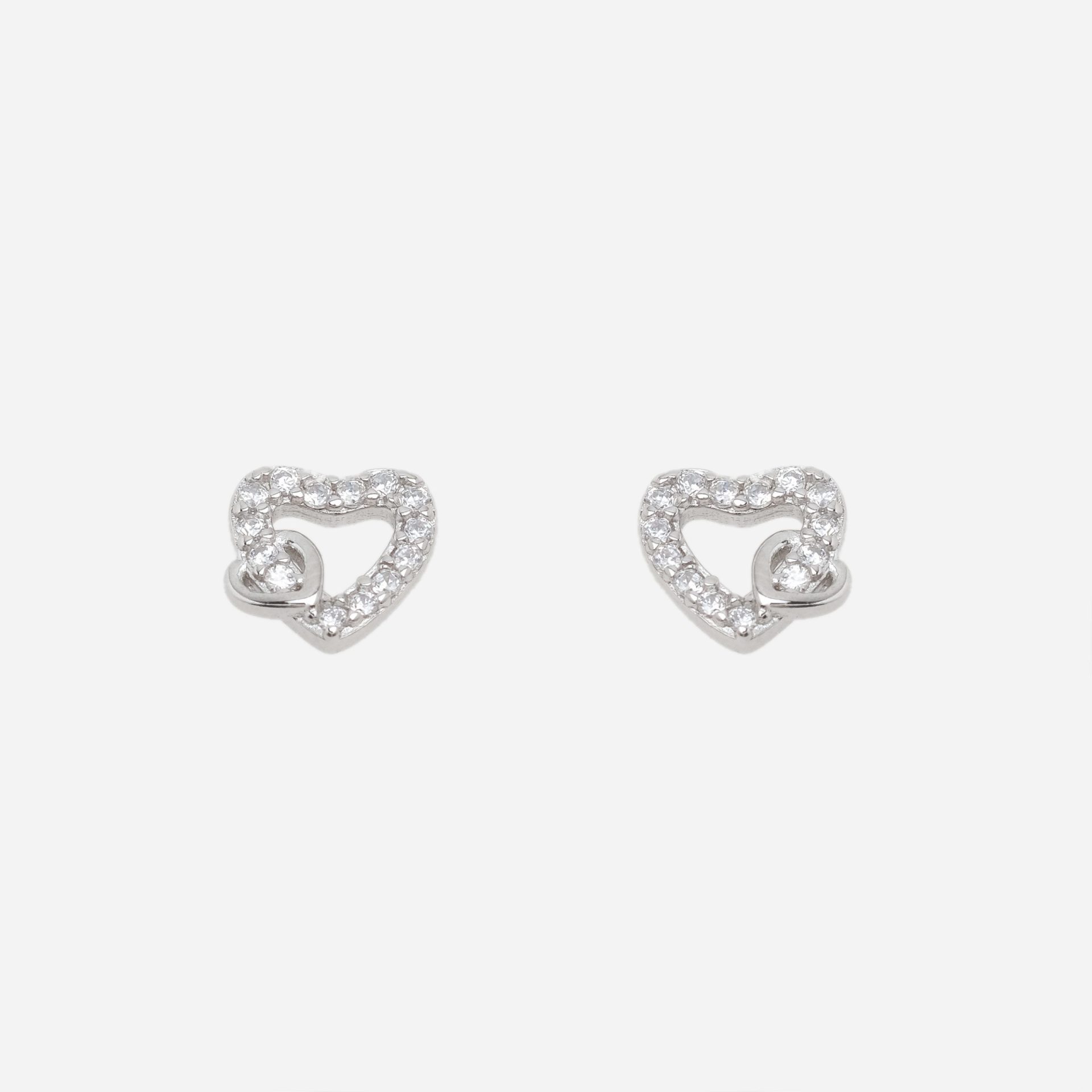 Brincos de tornilho com duplo coração. Coração maior com zircónias.