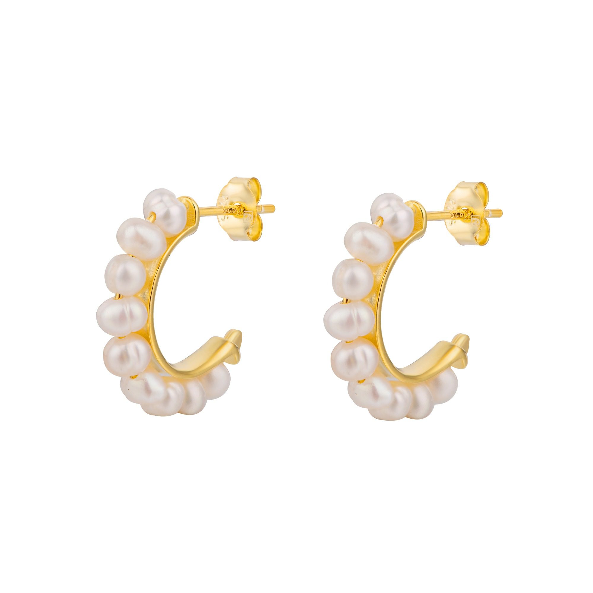 Brincos de tornilho com formato tipo argola com pérolas de água doce a toda a volta.
