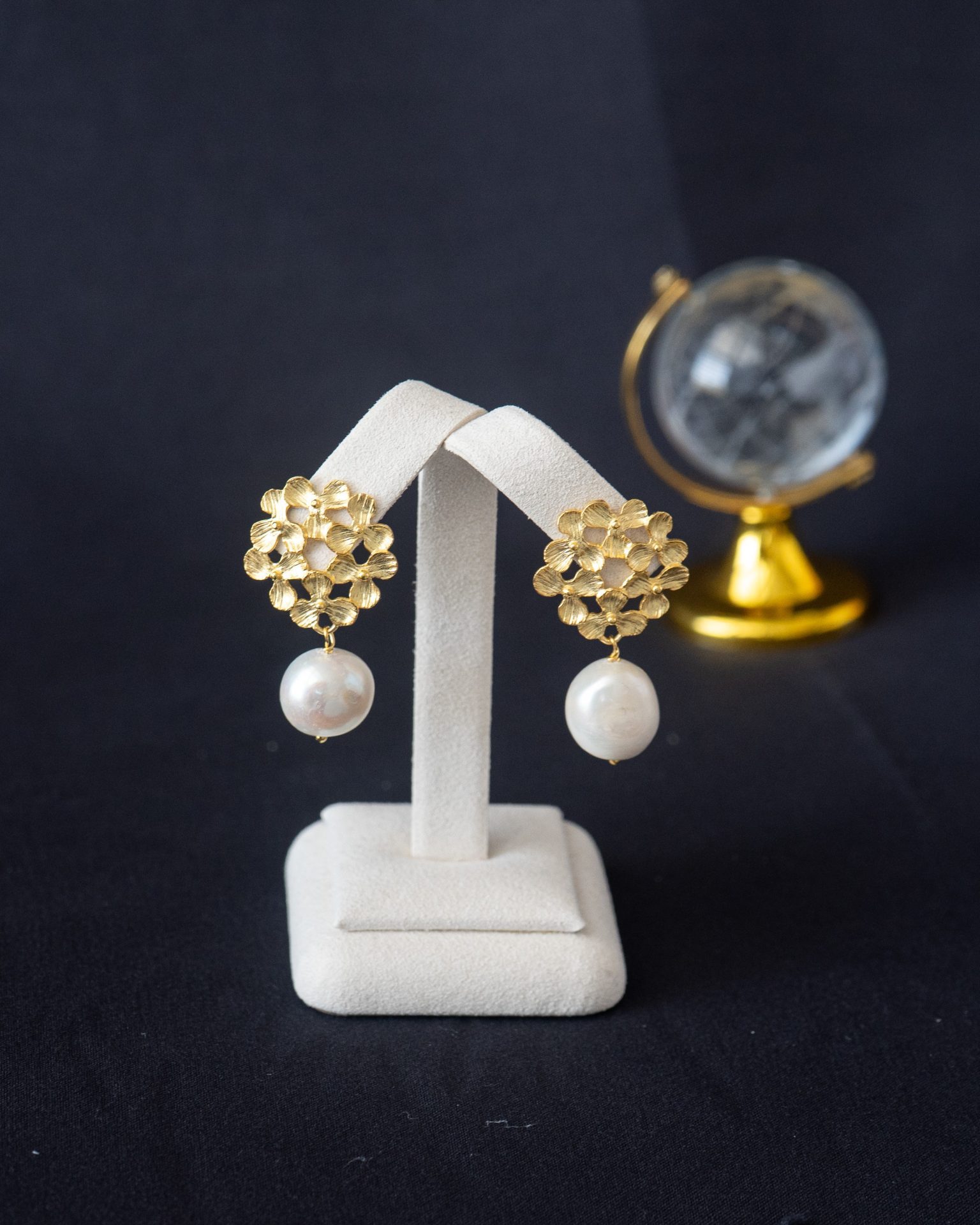 Brincos em prata dourada flores com pérolas