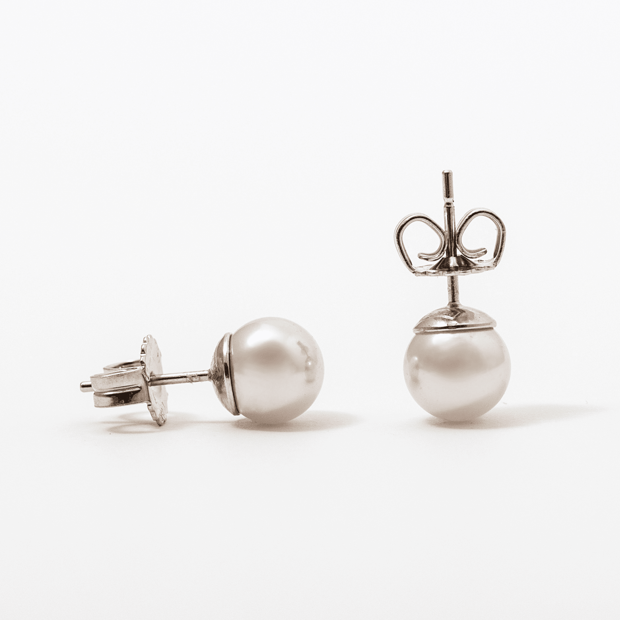Brincos Lyra com pérolas orgânicas de 8 mm produzidas na ilha de Maiorca e prata de lei 925 com banho de ródio