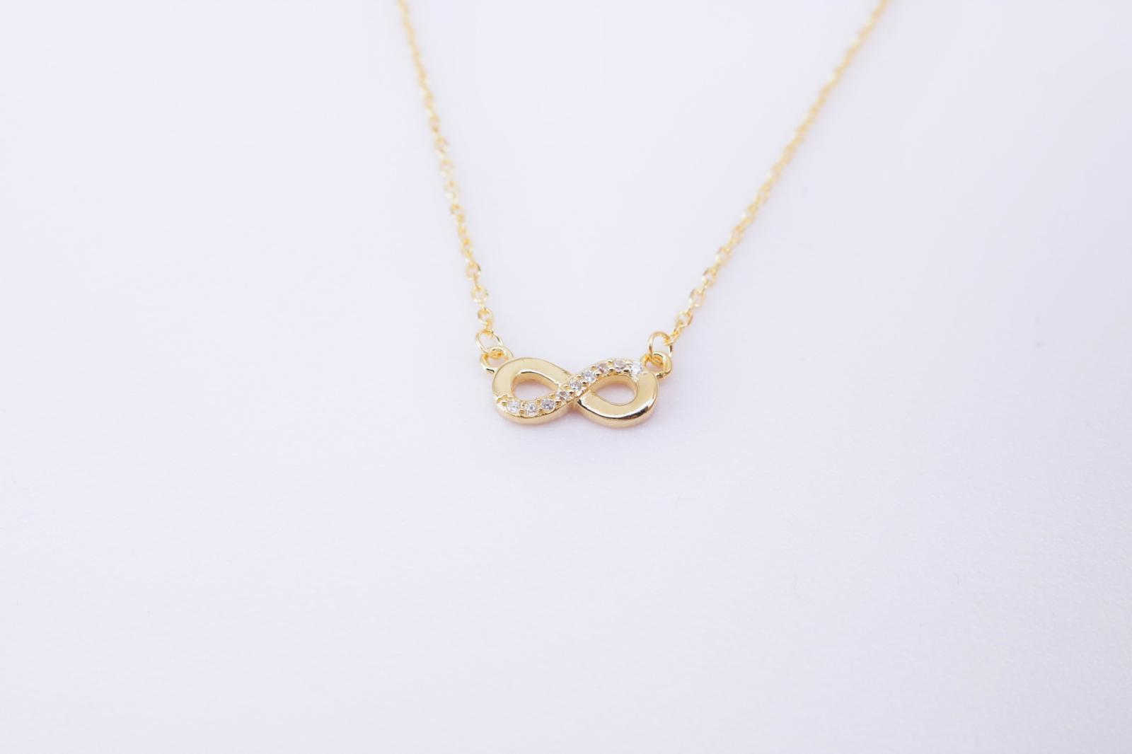 Colar com berloque do infinito. Infinito com cravação de zircónias em meia volta.