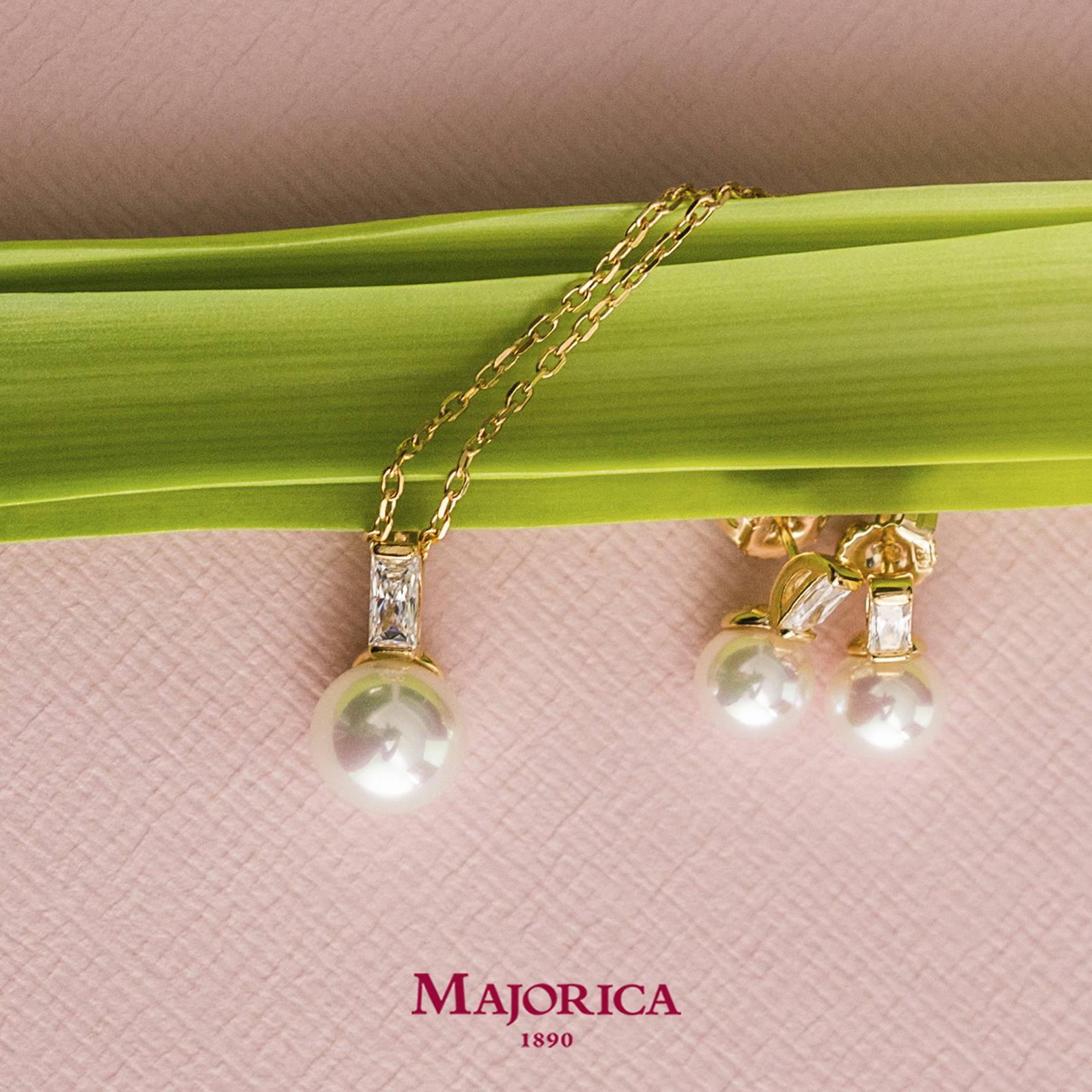 Colar de pérolas Auva com pérolas orgânicas de 10 mm produzidas na ilha de Maiorca e anodado à mão por artesãos especializados. Zircão e Prata de lei 925 com banho de ouro.