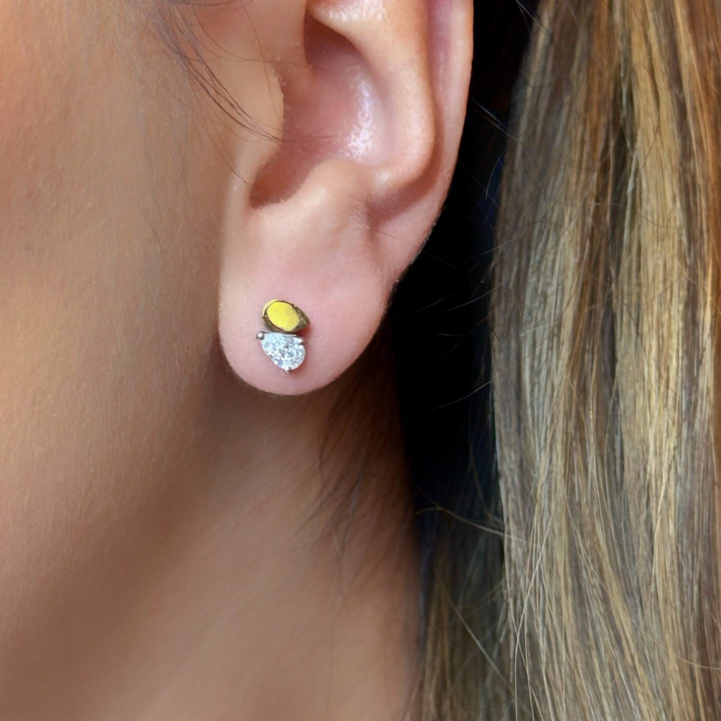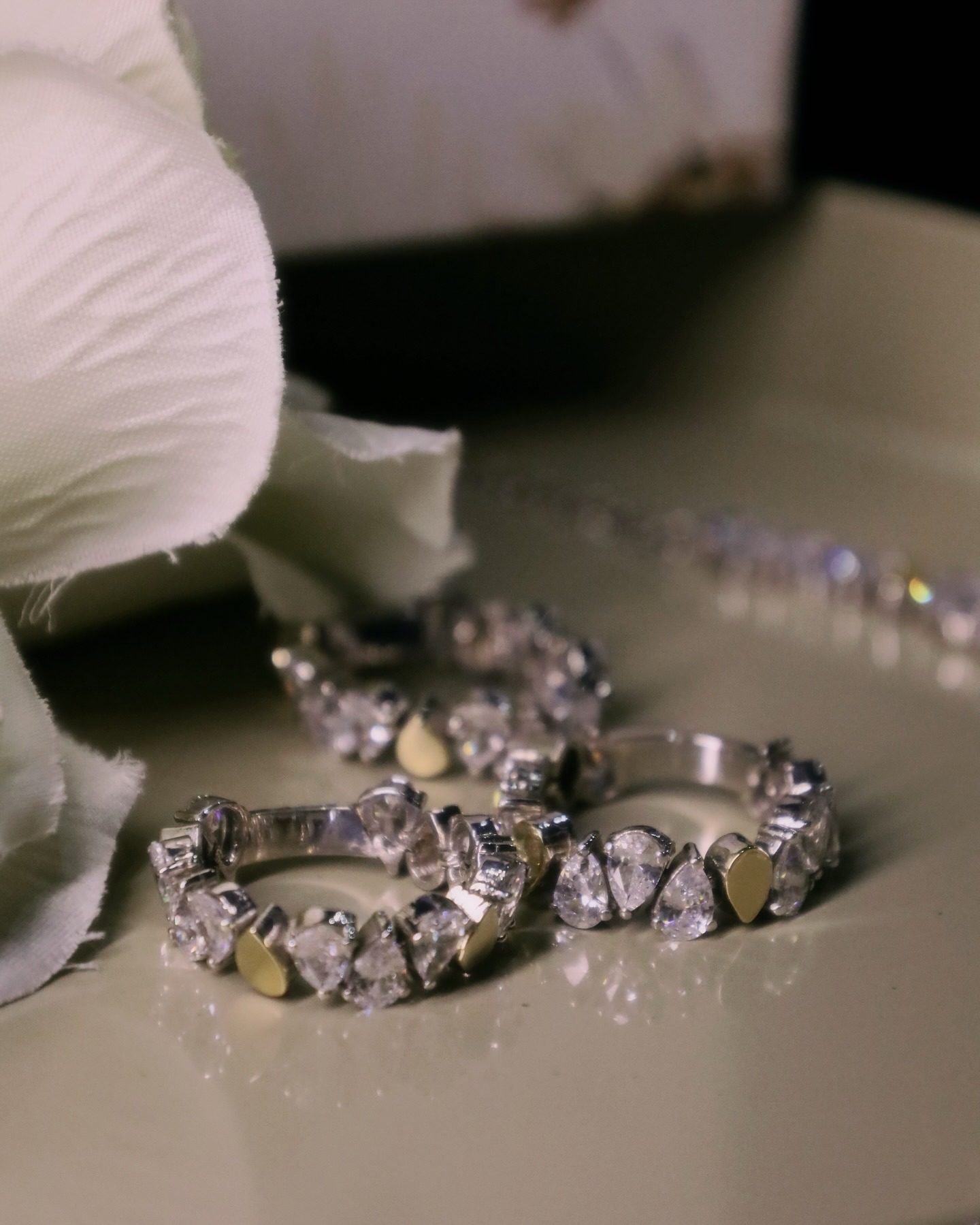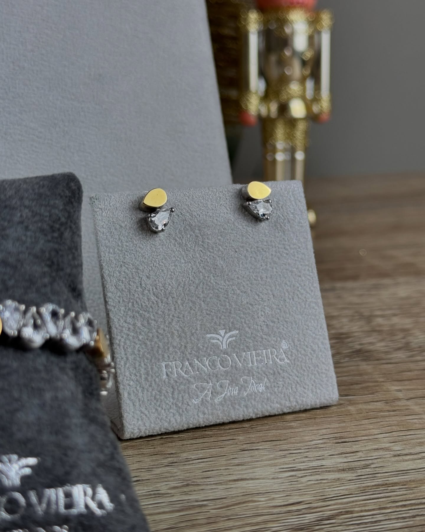 Conjunto em prata de lei e ouro de 9 kt com zircónias.
