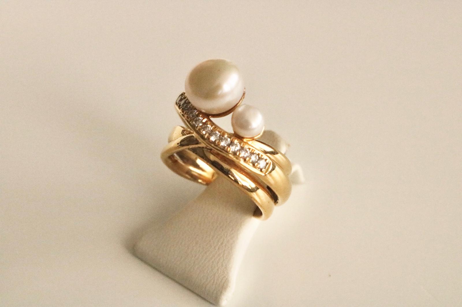 Conjunto colar e anel em prata de lei com pérolas de água doce e zircónias.