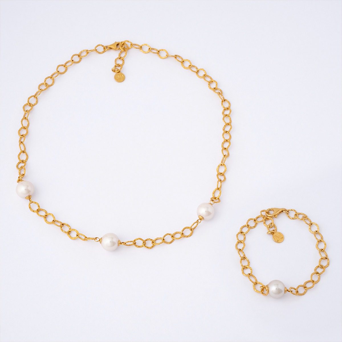 Pulseira de pérolas Aina com pérolas orgânicas de 8 mm produzidas na ilha de Maiorca. Prata de lei 925 com banho de ouro.