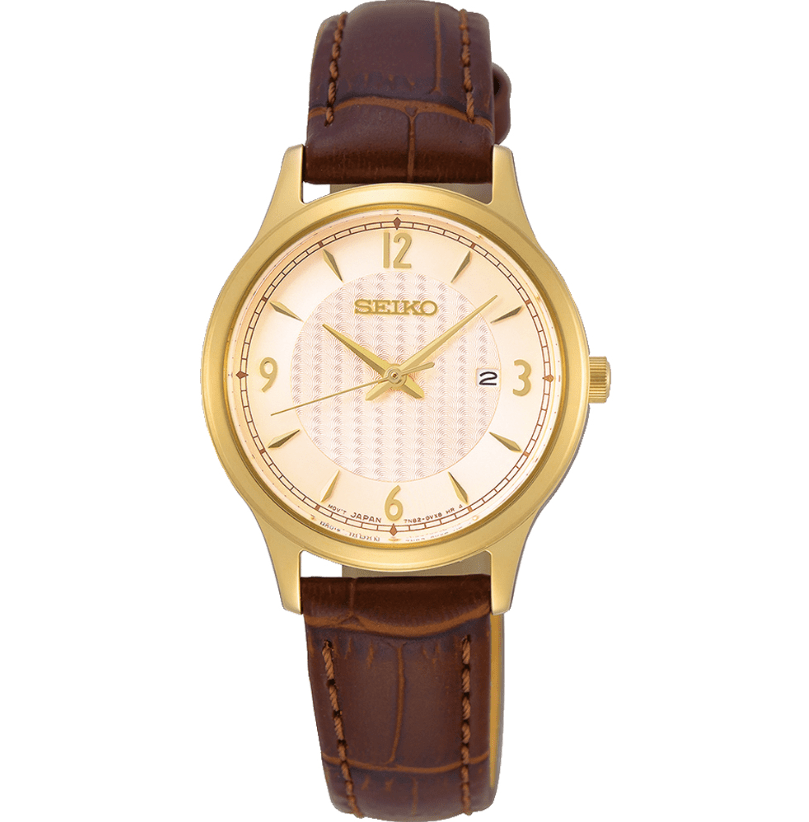 “O relógio de quartzo SXDG96P1 é a expressão perfeito do relógio formal e elegante para senhora. A sua caixa em aço inoxidável dourado confere-lhe distinção. O seu belíssimo mostrador é complementado por ponteiros e índices requintados. Finalmente, vai sobreviver à passagem dos anos graças à sua resistência à água de 10 bars, e ao vidro Hardlex resistente a choques.”