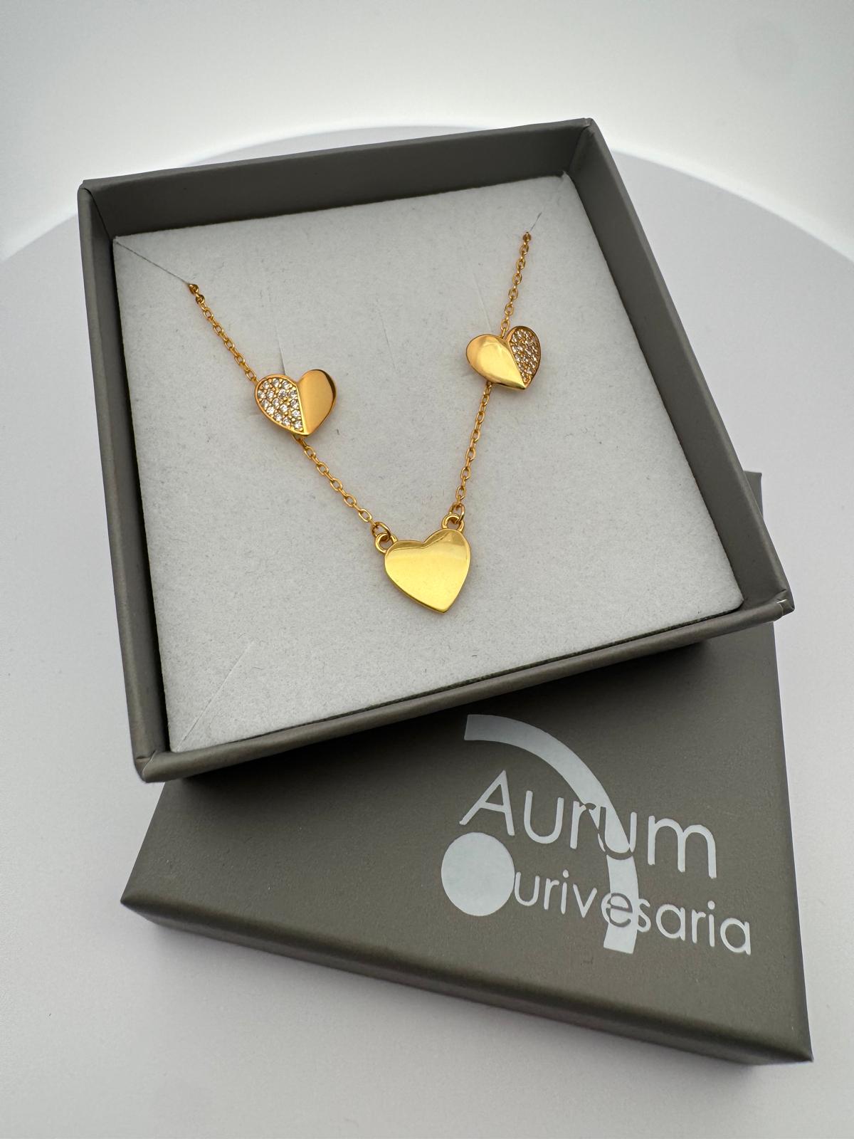 Conjunto Coração brincos e colar de prata.